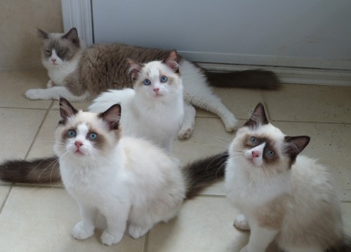 Faire l'adoption d'un chaton Ragdoll est un engagement important. Habituellement, il est recommandé de faire une réservation afin d'avoir un meilleur choix, surtout si on désir une couleur, un patron, ou un sexe particulier. Il faut prendre en considération que la gestation d'une chatte est de plus de deux mois, et que le chaton aura besoin d'au moins 3 mois avant d'être prêt pour sa nouvelle famille. Parfois, on a l'impression que c'est aussi long que l'attente nécessaire pour un enfant!